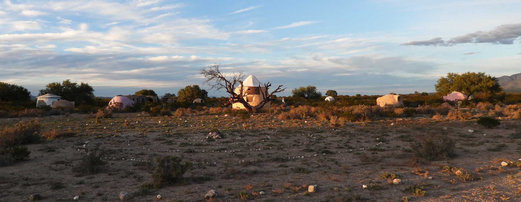 All of the buildings are made of adobe. The dreaming domes are designed for the teachings that can take place in your sleep.